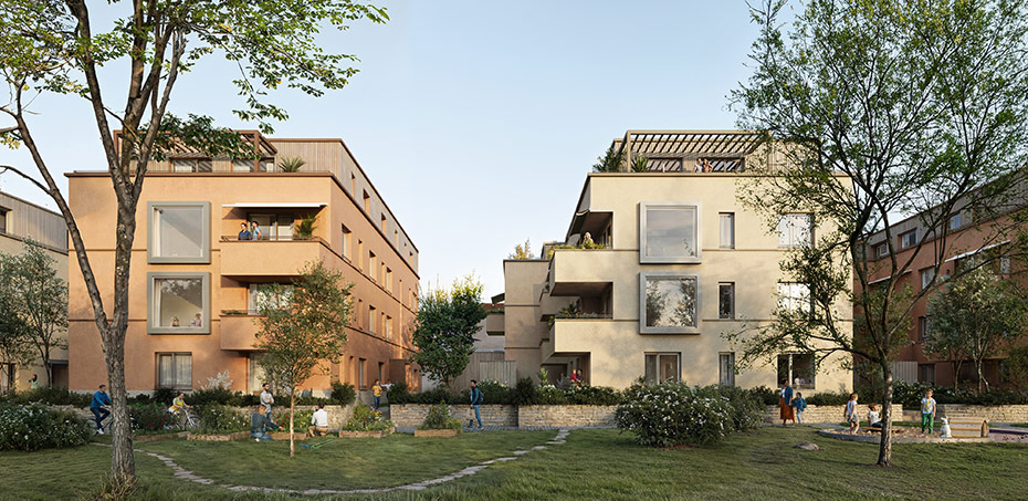 Gemeinschaftliche Grünflächen und Höfe binden an die bestehenden